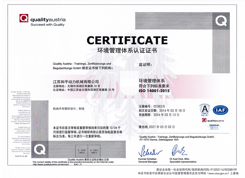憑借領先的研發理念和先進的制造技術,和平先后參與制定了《JB/T 6003.1—2014?內燃機 機油冷卻器第1部分:板翅式機油冷卻器 技術條件》《JB/T 10505- 2016 內燃機 機油散熱器 技術條件》《JB/T 0436 - 2013 內燃機 機油冷卻濾清模塊》《JB/T 6003.3—2016 內燃機 機油冷卻器第3部分:傳熱性能試驗方法》系列國家行業標準。